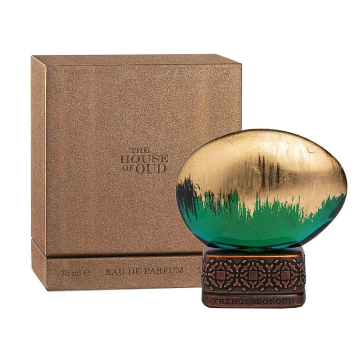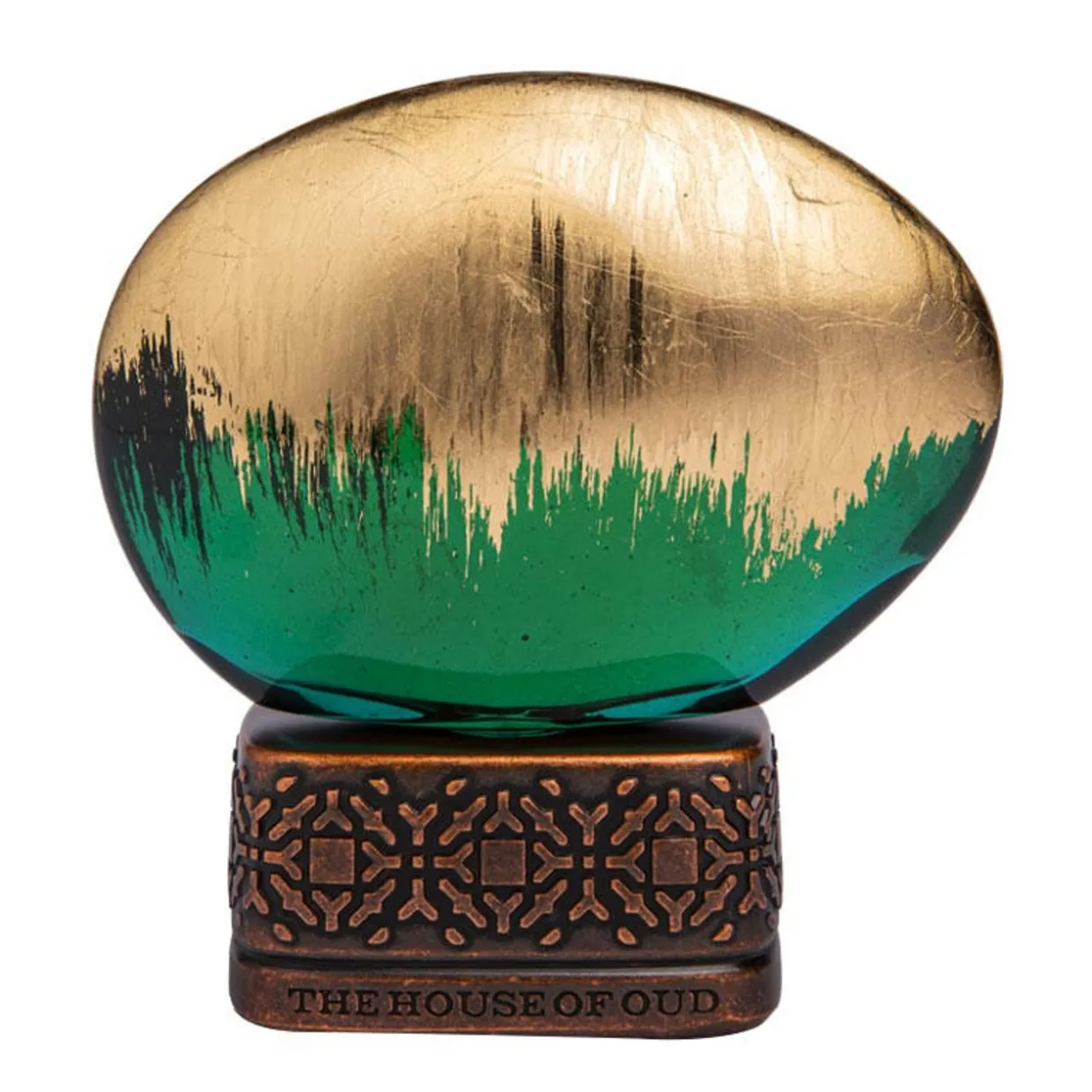La fragranza Crop 2022 è racchiusa in un’ampolla di vetro verde a forma di uovo che si erge su un piedistallo in rame riccamente decorato con delicati ornamenti orientali. Decorata a mano con foglie d’oro, in modo che il motivo dorato su ciascuna delle bottiglie sia unico, come la fragranza.